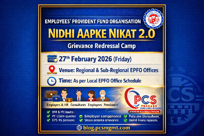 Prakash Consultancy Services (PCS) encourages organizations and employees to make full use of this facilitation camp to resolve pending PF matters and ensure smooth statutory compliance.