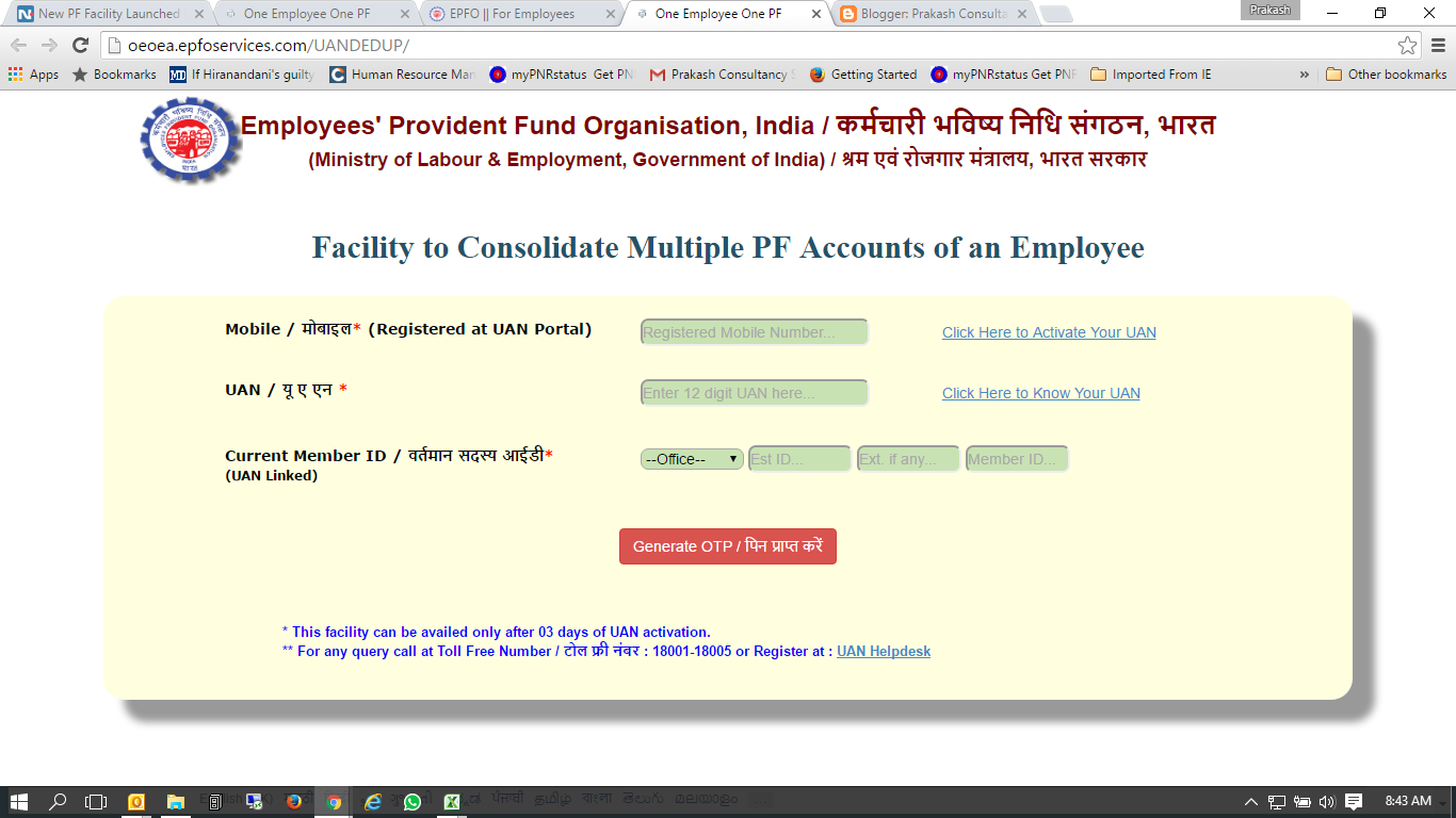 · On validating these credentials, EPFO will facilitate the member to register his/her as many as 10 earlier EPF accounts.
