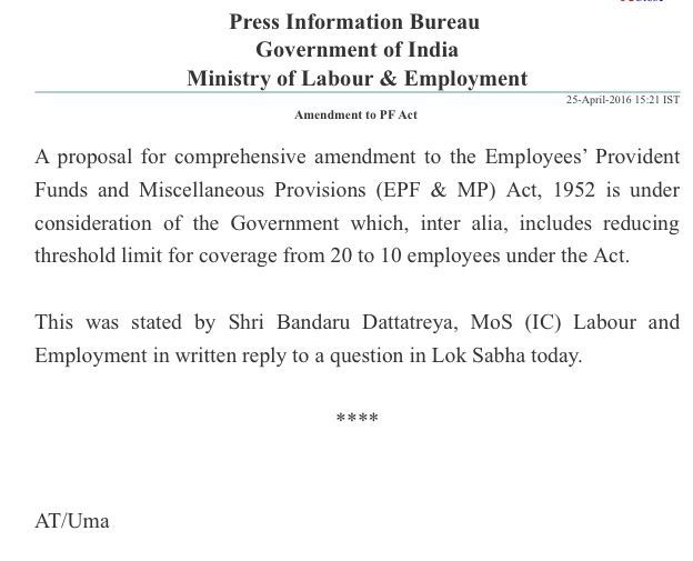 Sh. Dattatreya also informed this drive, would result in EPF members having just one EPF account and multiple conveniences. The Universal Account Number that is Aadhar seeded will consolidate multiple past service accounts, across various spells of employment during working life of an EPF member.